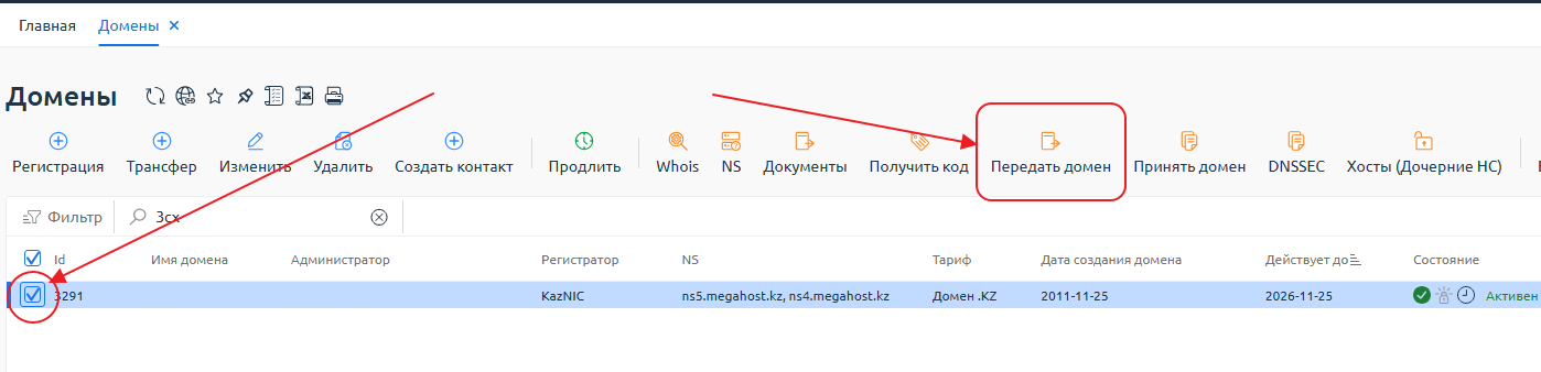После того как корректно заполнили данные и нажали Ок, необходимо перейти обратно в раздел Товары/Услуги - Домены и нажать кнопку Принять домен